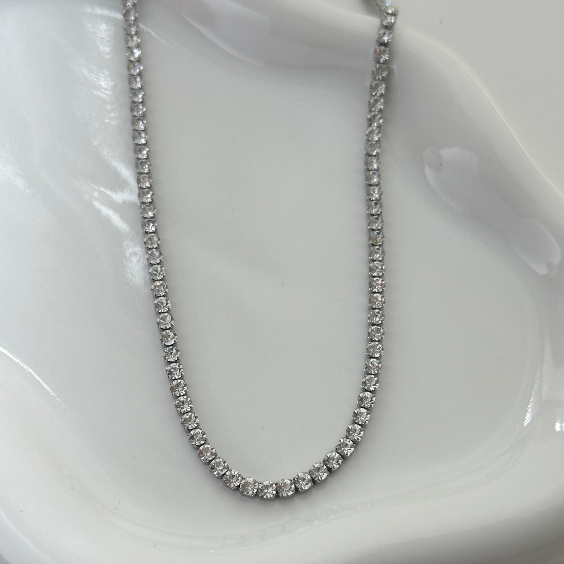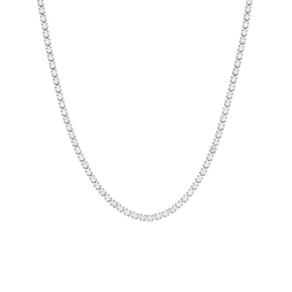 Get ready to shine with our Silver Tennis Necklaces! Crafted with high-quality stainless steel and adorned with sparkling silver and cubic zirconia, these necklaces add a touch of elegance to any outfit. Elevate your style and make a statement with these luxurious pieces.