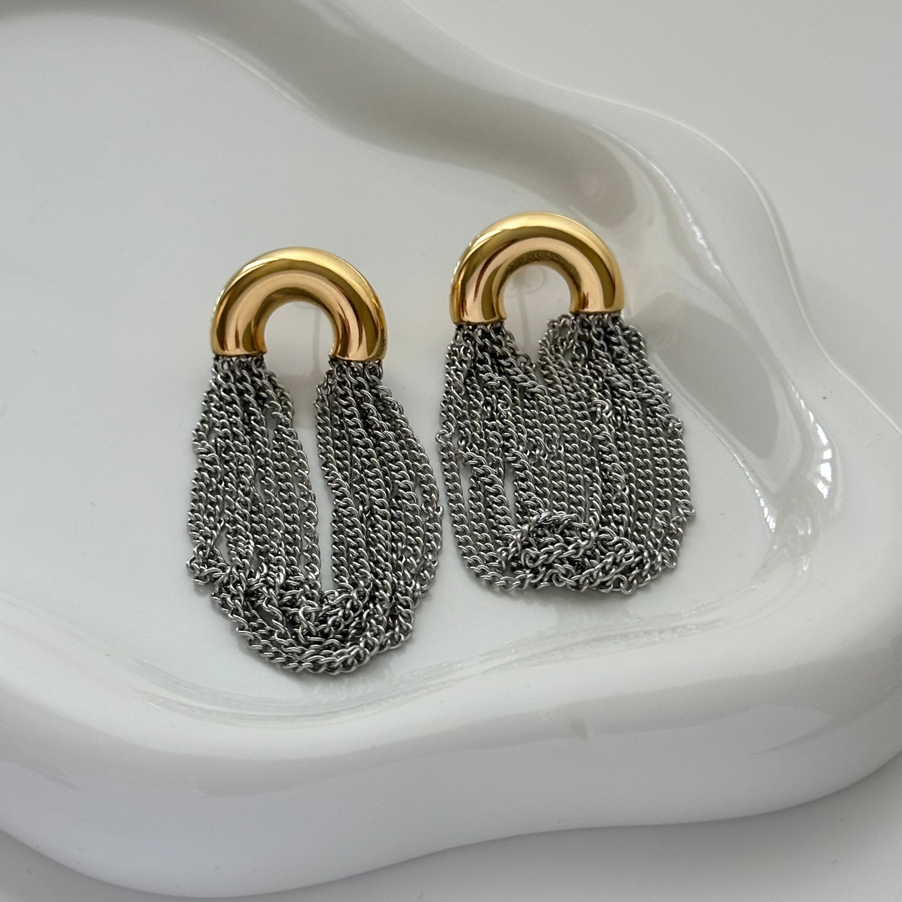 Elevate your style with our Juliet Earrings. These statement earrings feature a chic two-tone design crafted from high-quality stainless steel in gold and silver. Add a touch of fashion and sophistication to any outfit with these stunning earrings.