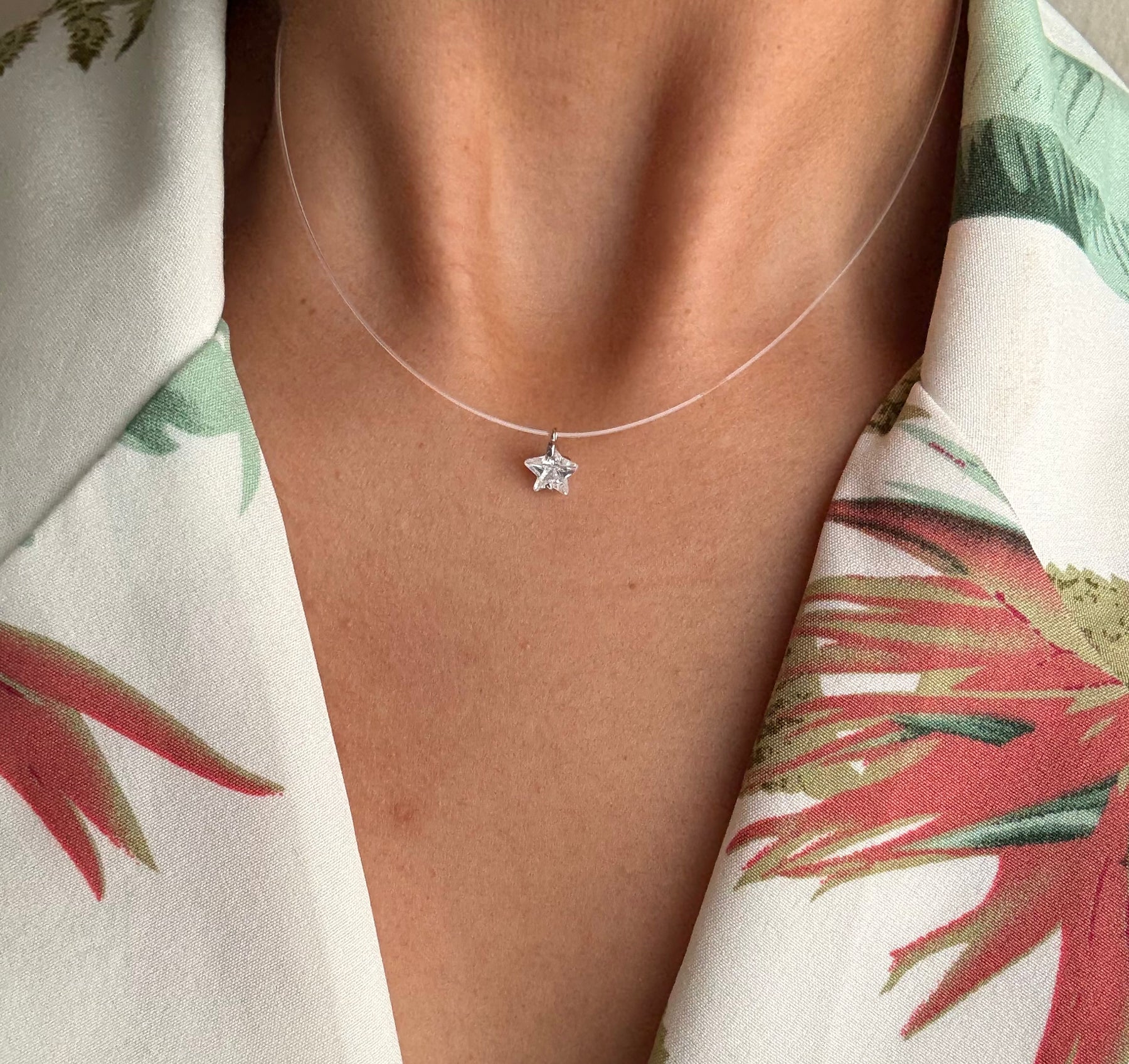 Crafted from 925 sterling silver, the Estrellita Clear Necklace features a delicate star pendant suspended on a clear chain. This elegant piece combines subtlety with a touch of celestial charm, making it a versatile accessory for everyday wear or special occasions. Its refined design ensures durability while adding a fashionable sparkle to any outfit.
