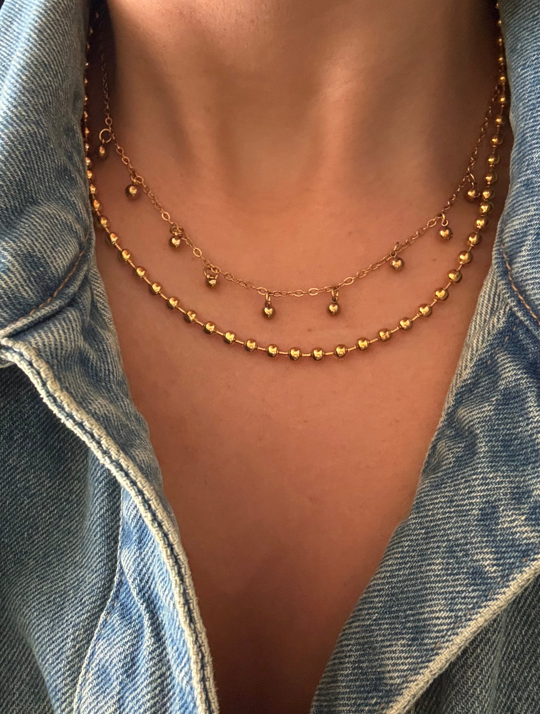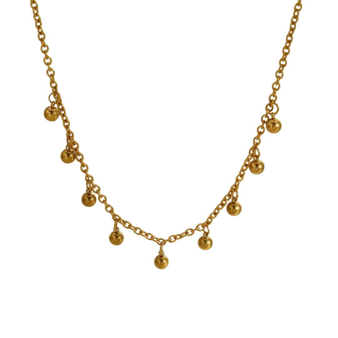 Realza tu estilo diario con la gargantilla Reese Gold, que combina la elegancia atemporal con la sofisticación moderna. Fabricada en acero inoxidable de primera calidad y con un lujoso baño de oro , esta impresionante pieza combina durabilidad con un brillo radiante, propio de una joyería, que no se desvanece. Su elegante diseño de bola le da un toque contemporáneo, perfecto para combinar con otras prendas o para lucirla sola. Ya sea para una salida nocturna o para un look casual, esta versátil gargantilla te ofrece el look de lujo que te mereces a un precio accesible.