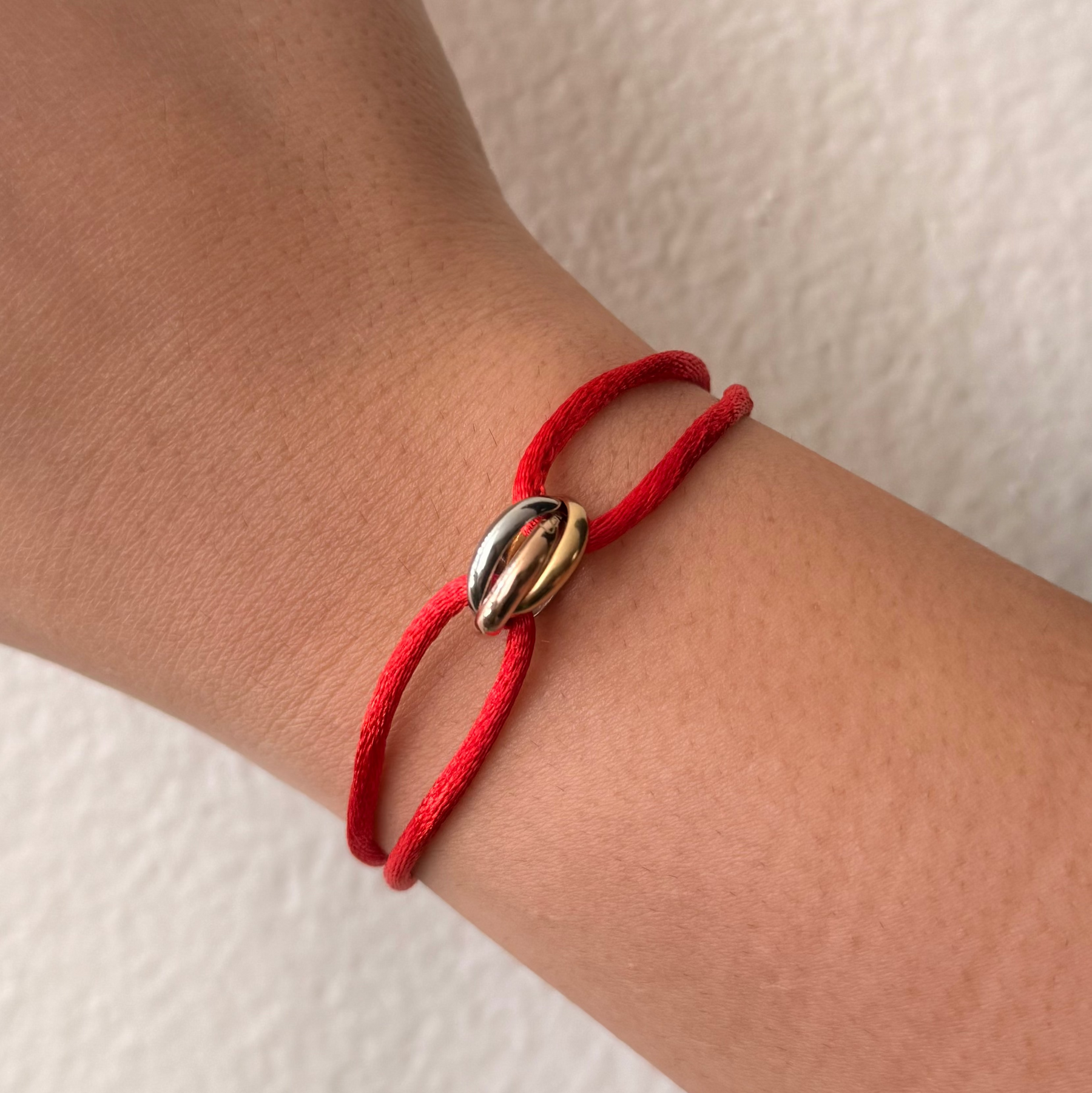 Elevate your everyday style with our Trinity Bracelets in Red This chic piece features three adjustable stainless steel rings in gold, silver, and rose gold finishes, offering versatile styling options for any occasion. Mix and match the rings to create your perfect look—wear them together for bold impact or separately for understated elegance. Durable, hypoallergenic, and effortlessly fun, these bracelets are the ultimate accessory for fashion-forward individuals who love to express their unique personality.